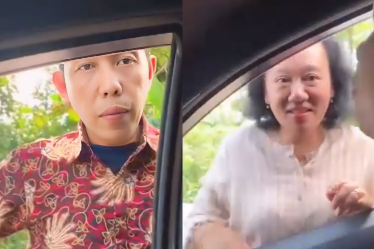 Video tersebut memperlihatkan insiden yang melibatkan pria dan istrinya yang mengendarai mobil di jalan sempit.
